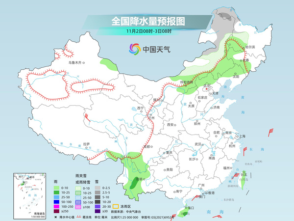 明天,內(nèi)蒙古中東部、黑龍江西北部等地部分地區(qū)有小雪或雨夾雪,其中,內(nèi)蒙古東北部、黑龍江西北部等地局部地區(qū)有中雪。內(nèi)蒙古中部、東北地區(qū)西部、西藏東南部、華北北部、四川南部、云南大部、海南島大部、臺(tái)灣島東部等地部分地區(qū)有小雨,其中,云南中部、海南島東南部等地部分地區(qū)有中雨。