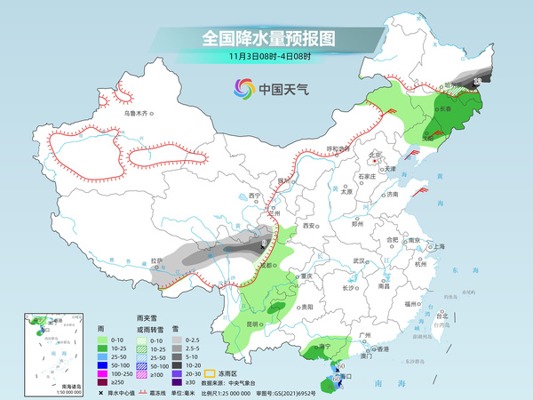 后天,黑龍江東部、西藏東部、青海東南部、川西高原北部等地部分地區(qū)有小到中雪或雨夾雪,其中,黑龍江東部、川西高原北部等地部分地區(qū)有大到暴雪。東北地區(qū)中東部、海南島、雷州半島等地部分地區(qū)有中到大雨,其中,雷州半島、海南島東南部等地部分地區(qū)有暴雨。