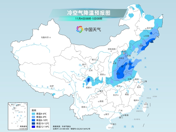 今天(11月4日),強冷空氣持續(xù)發(fā)力,降溫中心東移南壓,華北、東北等地氣溫明顯下降。明后天將迎來本輪降溫過程的低點,多地會刷新立秋后氣溫新低。此外,海南島等地今天仍會有強降雨出現(xiàn),部分地區(qū)累計雨量大,公眾需高度警惕次生災害。