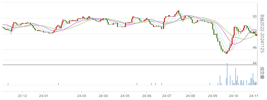 今日(2024年11月06日,周三)中國(guó)繭絲綢交易市場(chǎng)生絲電子指數(shù)上漲0.16%收于4760.46點(diǎn)。B絲2022D(商檢4A級(jí)生絲):241125合約上漲0.18萬(wàn)元報(bào)收于47.94萬(wàn)元;250325合約上漲0.12萬(wàn)元報(bào)收于47.58萬(wàn)元;250925合約上漲0.09萬(wàn)元報(bào)收于47.22萬(wàn)元。