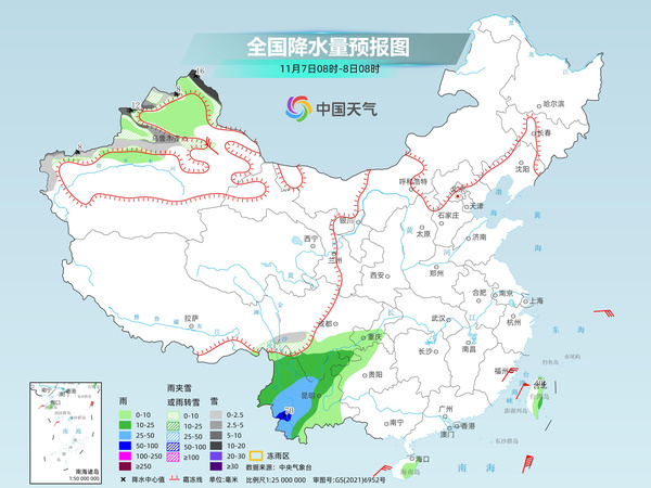 明天,新疆中北部等地部分地區(qū)有小雪或雨夾雪,其中,新疆北疆北部和伊犁河谷等地部分地區(qū)有中到大雪,局地暴雪。浙江東北部、云南南部等地部分地區(qū)有小到中雨。新疆中東部、福建東南部沿海等地有4~5級(jí)、陣風(fēng)6~7級(jí)的大風(fēng)。
