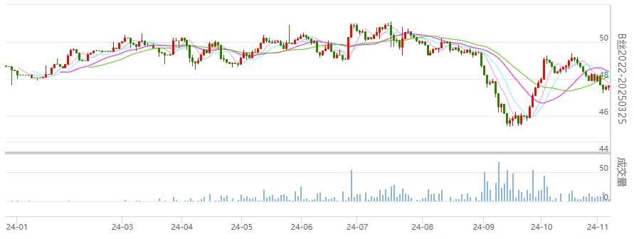 今日(2024年11月07日,周四)中國繭絲綢交易市場生絲電子指數(shù)上漲0.26%收于4772.98點。B絲2022D(商檢4A級生絲):241125合約上漲0.27萬元報收于48.21萬元;250325合約上漲0.06萬元報收于47.64萬元;250925合約上漲0.06萬元報收于47.28萬元。