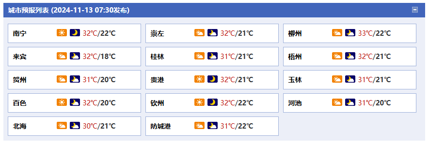 廣西氣象臺(tái)13日05時(shí)發(fā)布預(yù)報(bào):