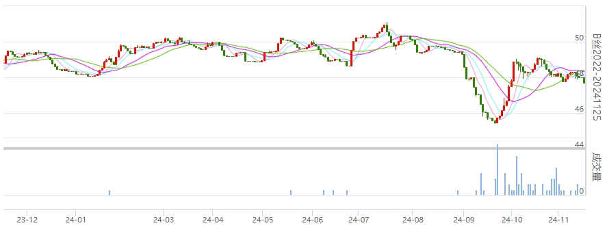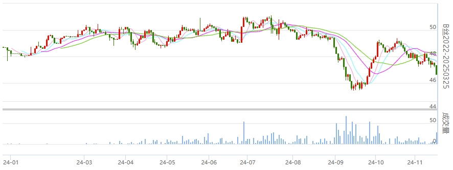 今日(2024年11月18日,周一)中國繭絲綢交易市場生絲電子指數(shù)下跌0.98%收于4701.35點。B絲2022D(商檢4A級生絲):241125合約下跌0.30萬元報收于47.70萬元;250325合約下跌0.69萬元報收于46.65萬元;250925合約下跌0.51萬元報收于46.17萬元。