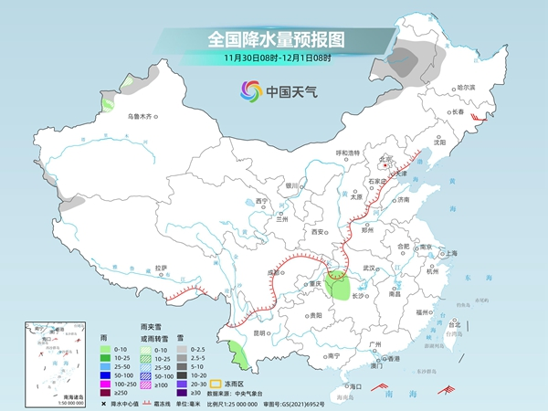 明天,內(nèi)蒙古東部、黑龍江西部、新疆北疆北部等地部分地區(qū)有小雪或雨夾雪,其中,內(nèi)蒙古東北部部分地區(qū)有中雪。湖北南部、湖南北部和西部、重慶東南部、云南西南部等地部分地區(qū)有小雨。