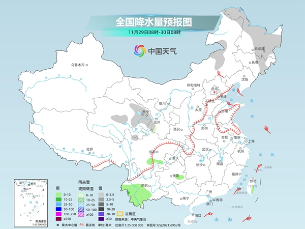 中央氣象臺預(yù)計(jì),今天,內(nèi)蒙古中東部、黑龍江大部、吉林中東部、青海東部、甘肅西南部等地部分地區(qū)有小到中雪或雨夾雪。云南西南部、貴州東部、四川東南部等地部分地區(qū)有小雨,其中,云南西南部局地有中雨。