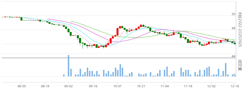 今日(2024年12月16日,周一)中國繭絲綢交易市場生絲電子指數(shù)下跌0.30%收于4680.75點。B絲2022D(商檢4A級生絲):241225合約下跌0.09萬元報收于47.61萬元;250325合約下跌0.12萬元報收于46.77萬元;250925合約下跌0.15萬元報收于45.99萬元。