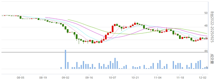 今日(2024年12月4日,周三)中國繭絲綢交易市場生絲電子指數(shù)微跌0.09%收于4692.78點。B絲2022D(商檢4A級生絲):241225合約下跌0.06萬元報收于47.73萬元;250325合約報平收于46.80萬元;250925合約上漲0.06萬元報收于46.20萬元。