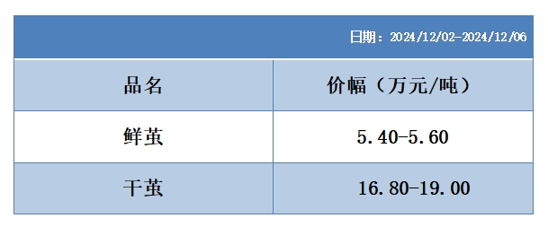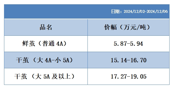 根據(jù)本周蠶繭報價按照指數(shù)方案形成的基準品價格區(qū)間