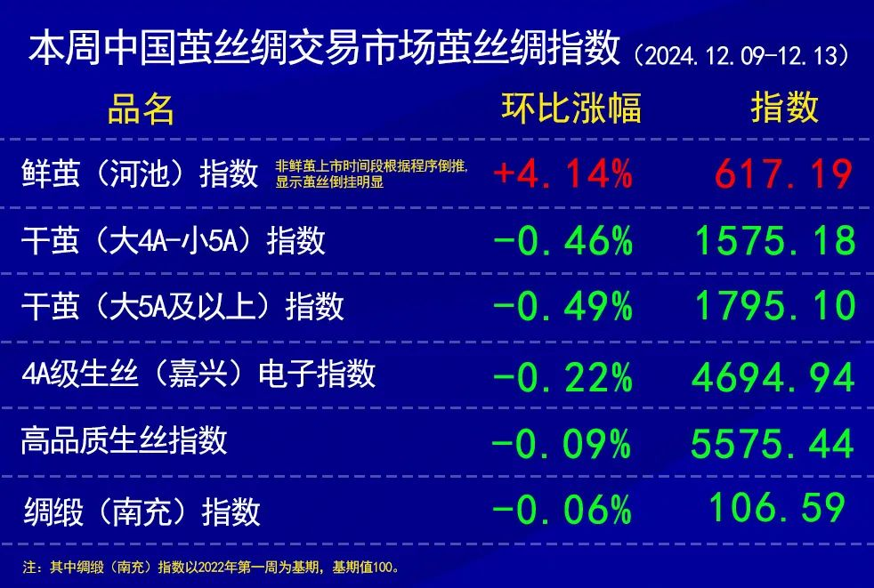 本周中國(guó)繭絲綢交易市場(chǎng)繭絲綢指數(shù)