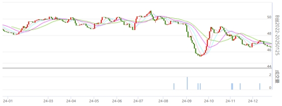 今日(2024年12月25日,周三)中國繭絲綢交易市場生絲電子指數(shù)微跌0.02%收于4631.48點(diǎn)。B絲2022D(商檢4A級生絲):250125合約報(bào)平收于46.56萬元;250325合約下跌0.03萬元報(bào)收于46.44萬元;250925合約報(bào)平收于46.05萬元。