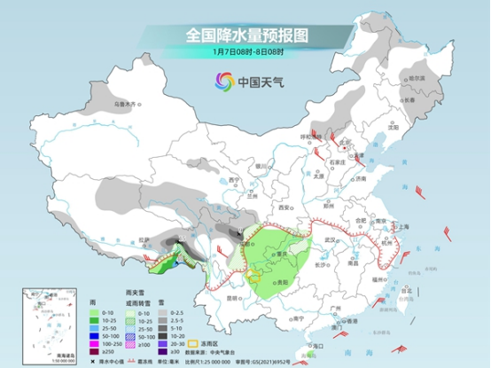 今后三天(1月7日至9日),冷空氣將給中東部大部和西南地區(qū)帶來明顯降溫,多地氣溫將創(chuàng)立冬后新低。同時(shí),南方降水將逐漸向東擴(kuò)展增多,并波及江南西部等地,四川、貴州、重慶、湖北、湖南等地將經(jīng)歷雨雪轉(zhuǎn)換,局地需警惕凍雨。