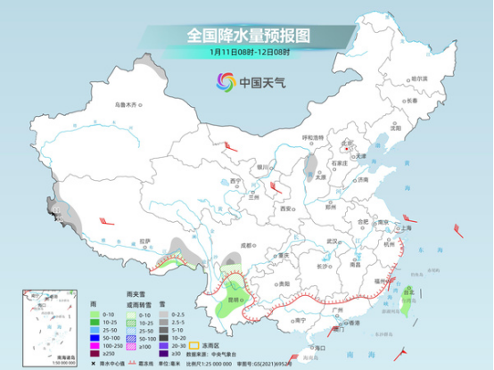 明天,內(nèi)蒙古西北部、甘肅西部和中南部、青海北部和東部、西藏東南部、川西高原、貴州西部、云南東北部等地部分地區(qū)有小到中雪或雨夾雪。四川盆地中西部、貴州西南部、云南中東部、廣西西北部、臺(tái)灣島大部等地部分地區(qū)有小雨,其中,四川盆地南部、云南東北部等地部分地區(qū)有中雨。