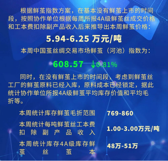 本周中國(guó)繭絲綢交易市場(chǎng)繭絲綢指數(shù)