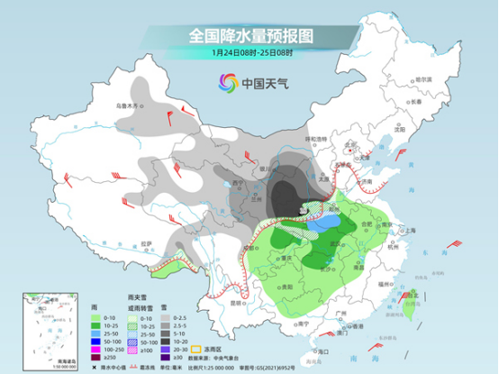 中國天氣網(wǎng)提醒,這輪雨雪過程中,24日至25日,西北地區(qū)東部、華北、黃淮、江漢等地將出現(xiàn)大范圍雨雪天氣,陜西、山西、河南或成為強(qiáng)降雪中心,26日至27日,隨著寒潮繼續(xù)東移南下,東北地區(qū)也將迎來強(qiáng)降雪。眼下2025年春運(yùn)正如火如荼開展中,公眾返鄉(xiāng)途中需注意防范雨雪冰凍天氣對交通出行的不利影響。