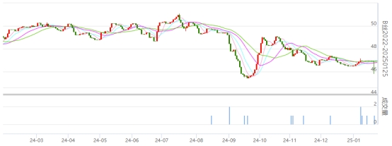 今日(2025年01月23日,周四)中國繭絲綢交易市場生絲電子指數(shù)下跌0.12%收于4603.00點。B絲2022D(商檢4A級生絲):250125合約報平收于46.95萬元;250325合約下跌0.15萬元報收于46.05萬元;250925合約下跌0.09萬元報收于45.15萬元。