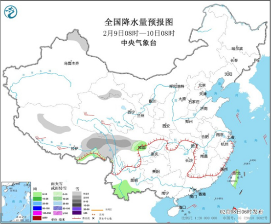 今天(2月8日),全國(guó)雨雪將有所減少,主要出現(xiàn)在四川、貴州、云南、西藏等地,中東部大部多晴朗干燥天氣;隨著寒潮繼續(xù)南下,降溫區(qū)域也進(jìn)一步南壓,江南不少地方最高氣溫將創(chuàng)今冬以來(lái)新低。