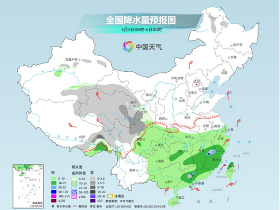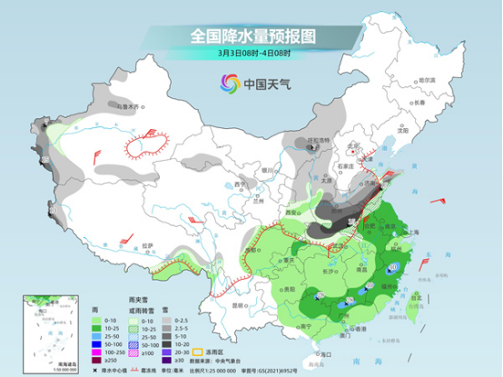 氣象部門(mén)提醒,未來(lái)三天,我國(guó)雨雪范圍仍然較大,部分地區(qū)有降雪,容易導(dǎo)致道路濕滑、能見(jiàn)度不佳,出行需注意交通安全;南方部分地區(qū)還需注意防范強(qiáng)對(duì)流天氣的不利影響,公眾請(qǐng)及時(shí)關(guān)注臨近預(yù)警信息,盡量避免在強(qiáng)對(duì)流時(shí)段出行。