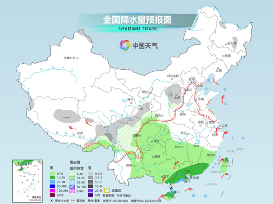 明天,新疆南疆盆地、西藏東部、西北地區(qū)東部等地的部分地區(qū)有小雪或雨夾雪,其中,西藏東北部、青海東部、甘肅南部、川西高原北部等地的部分地區(qū)有中到大雪。西南地區(qū)東部、江南、華南、臺灣島等地的部分地區(qū)有小到中雨,其中,廣西東南部沿海、廣東西部、臺灣島西北部等地的部分地區(qū)有大雨。