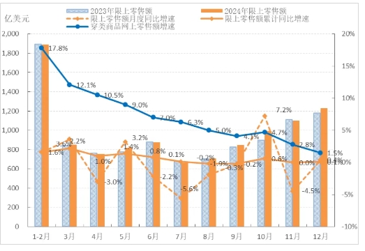 再看下,2024年1-12月國家統(tǒng)計局國內(nèi)市場的服裝銷售情況。