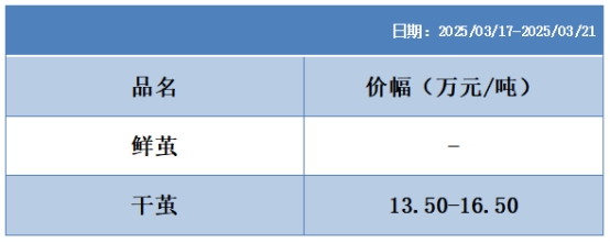本周高品位生絲協(xié)作單位成交價(jià)格區(qū)間