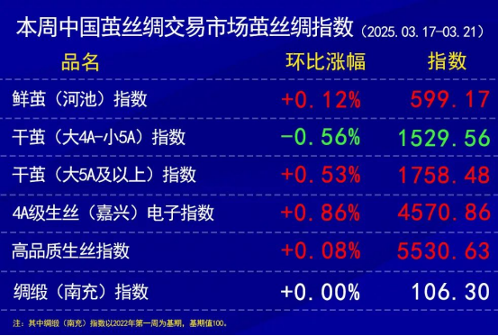 今日(周五)盤面小幅波動(dòng)。現(xiàn)貨月250325合約將在下周一迎來最后交易日,今日小幅減倉(cāng)收綠。今日250925合約成交以換手為主。本周4A級(jí)生絲電子指數(shù)累計(jì)上漲0.86%報(bào)收于4570.86點(diǎn)。