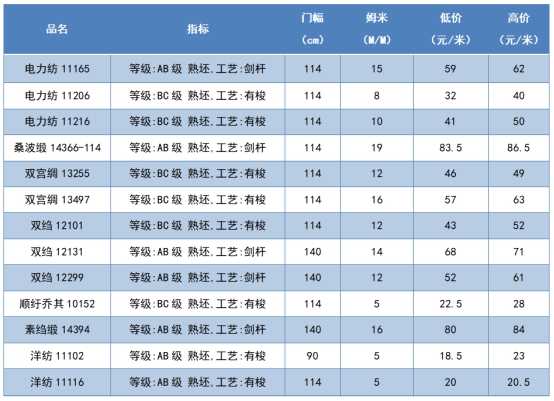 本周綢緞指數(shù)協(xié)作單位成交價(jià)格區(qū)間