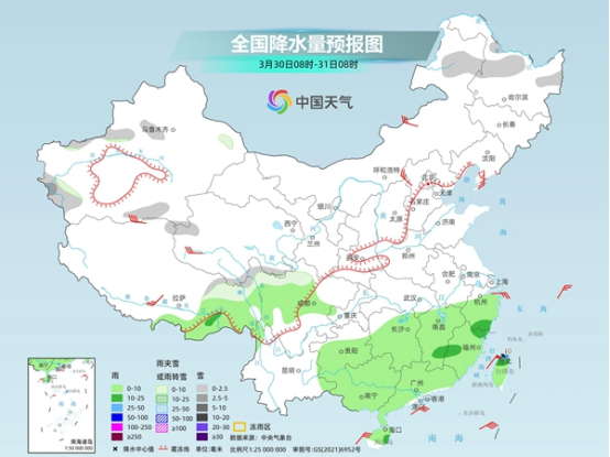 今天至31日,南方仍會(huì)維持多陰雨的天氣格局,其中今天華南部分地區(qū)伴隨降雨還可能出現(xiàn)強(qiáng)對(duì)流天氣,明天起南方則以穩(wěn)定性降水為主。