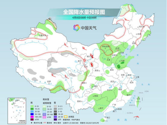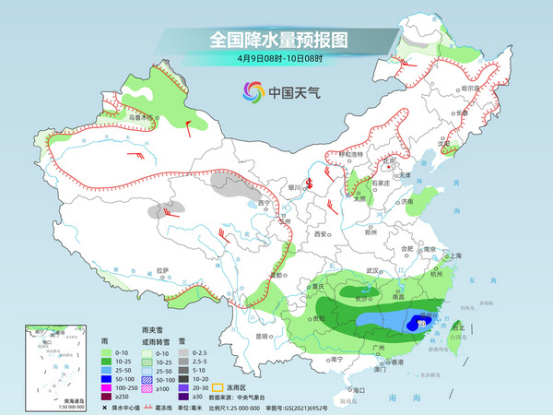 今天白天,南方陰雨整體較弱,以穩(wěn)定性降雨為主,華北、黃淮有弱降水。中央氣象臺預計,今天,吉林東部、新疆北疆北部、西藏中部、青海南部和西部、甘肅河西、河北北部、川西高原北部等地部分地區(qū)有小雪或雨夾雪,其中,新疆北疆北部等地部分地區(qū)有中到大雪(5~8毫米)。內(nèi)蒙古中西部、遼寧西部、西藏東南部、華北大部、黃淮東部、江南西部、西南地區(qū)東南部、華南西部、臺灣島大部等地部分地區(qū)有小雨,其中,山東中南部部分地區(qū)有中雨。