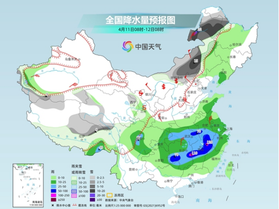 隨著較強(qiáng)冷空氣登場,今起三天,內(nèi)蒙古東部和東北地區(qū)等地將遭遇強(qiáng)雨雪,最強(qiáng)降雪時(shí)段將出現(xiàn)在11日夜間至12日夜間。同時(shí),今明兩天南方地區(qū)或現(xiàn)今年來最強(qiáng)風(fēng)雹天氣,湖北、湖南、安徽、江西、浙江、福建、廣西等地部分地區(qū)今天需防范強(qiáng)降雨。