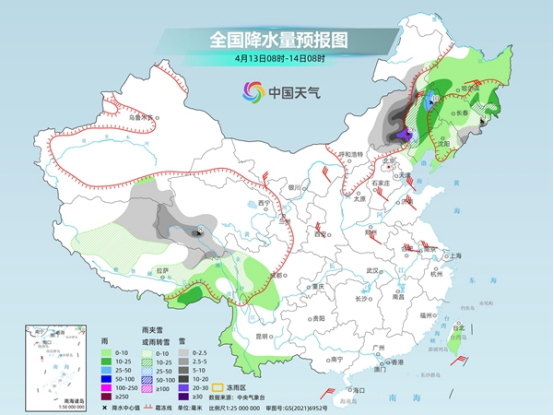 中央氣象臺預(yù)計(jì),今天,內(nèi)蒙古大部、黑龍江西北部、新疆南疆西部山區(qū)、青藏高原中東部和南部等地部分地區(qū)有小到中雪或雨夾雪,其中,內(nèi)蒙古中東部、黑龍江西部、西藏東北部等地部分地區(qū)有大到暴雪,其中,內(nèi)蒙古東北部等地局地有大暴雪。湖北大部、河南東南部、安徽中南部、浙江西部、福建西北部、江西中北部、湖南東部和南部、廣西北部、四川盆地西部、西藏東南部等地部分地區(qū)有大到暴雨,其中,湖南東部、江西西部和北部等地局地有大暴雨。