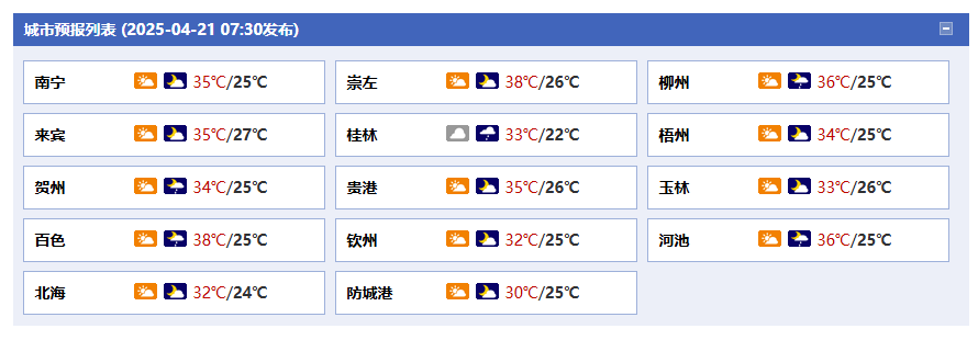 廣西氣象臺(tái)21日05時(shí)發(fā)布預(yù)報(bào):