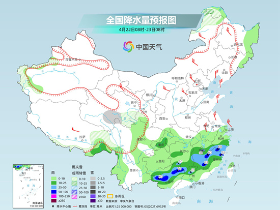 預計今明兩天(4月22日至23日),南方的降水相對昨天來說強度將會有所減弱,并且降水核心區(qū)域也將向南轉(zhuǎn)移,其中今天,廣西、福建等地部分地區(qū)或現(xiàn)暴雨。此外,受冷空氣影響,未來幾天,北方大部氣溫波動。今明天將陸續(xù)小幅回升,周四氣溫又將明顯下降,提醒公眾注意及時調(diào)整著裝。