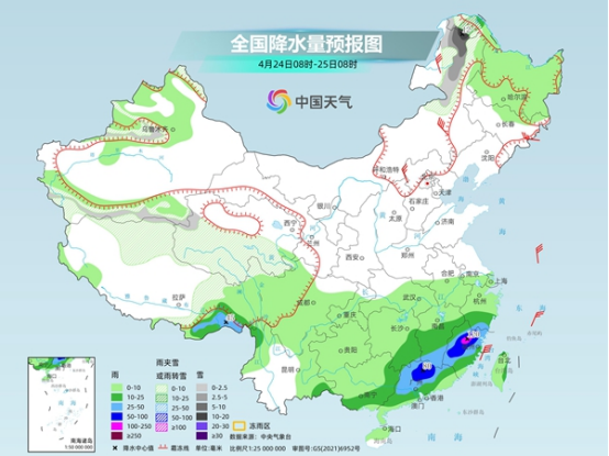 今起(4月24日)至周末,南方將持續(xù)多雨模式,華南部分地區(qū)累計(jì)降雨量較大,還伴有強(qiáng)對(duì)流天氣,需防范持續(xù)性降水可能引發(fā)的次生災(zāi)害,建議公眾及時(shí)關(guān)注預(yù)報(bào)預(yù)警信息,注意出行安全。同時(shí),北方有冷空氣“串場(chǎng)”,黃淮以北地區(qū)氣溫多起伏,需關(guān)注氣溫變化,及時(shí)增減衣物防感冒。