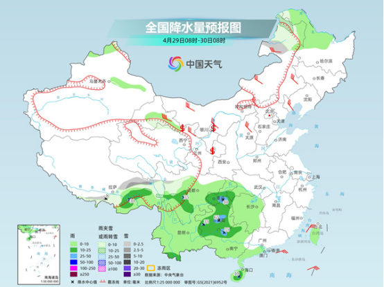 中國天氣網訊 未來三天(4月29日至5月1日),北方將出現(xiàn)顯著氣溫波動,氣溫達到高點后,很快又會受冷空氣影響而出現(xiàn)降溫;南方則將再迎明顯降雨過程,多地將現(xiàn)強降雨并伴有強對流天氣。臨近五一假期,公眾請?zhí)崆白龊靡?guī)劃行程,注意出行安全。