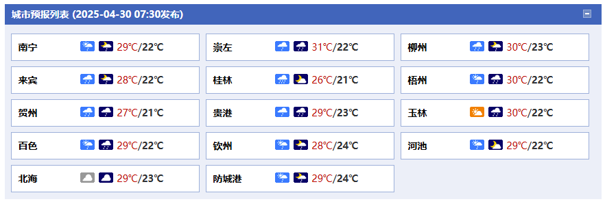廣西氣象臺(tái)30日05時(shí)發(fā)布預(yù)報(bào):