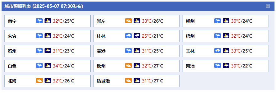 廣西氣象臺(tái)7日05時(shí)發(fā)布預(yù)報(bào):
