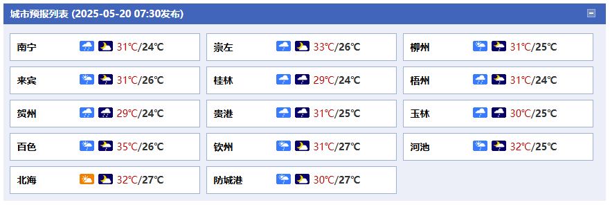 廣西氣象臺20日05時發(fā)布預報: