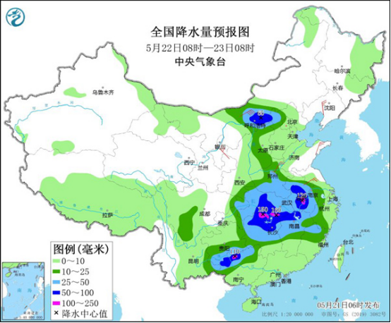 今天(5月21日)起,中東部降雨發(fā)展增多,江南、華南雨勢增強,部分地區(qū)有暴雨,局地大暴雨,同時西北地區(qū)東部、黃淮等地也將出現(xiàn)降雨,有利于緩解氣象干旱。隨著冷空氣到場,明后天降溫來襲,高溫范圍迅速縮減,中東部局地氣溫降幅可達15℃左右,氣溫起伏較大,公眾需注意及時添衣防著涼。