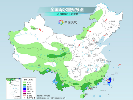 后天,西藏東南部、青海南部、云南西部和南部、廣西東部、廣東西南部和東部、福建東南部、臺(tái)灣島等地部分地區(qū)有中到大雨,其中,臺(tái)灣島有暴雨或大暴雨。