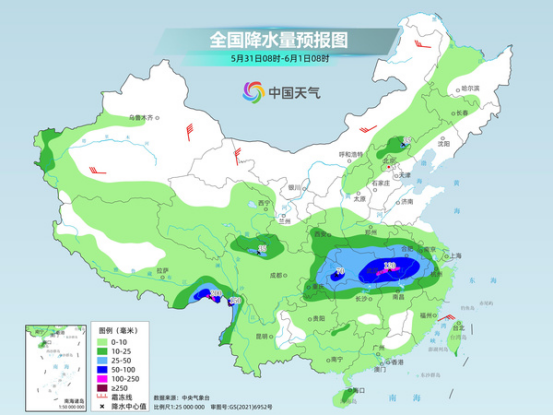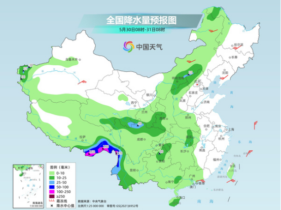 這一輪降雨過(guò)程剛剛結(jié)束,新一輪大范圍降雨過(guò)程接踵而至。預(yù)計(jì)今天到6月3日,自西北地區(qū)東部到南方大部又將出現(xiàn)一輪大范圍降水過(guò)程,其中今天,中東部整體以小到中雨為主;端午假期前兩天,長(zhǎng)江中下游沿江雨勢(shì)最強(qiáng),多地將現(xiàn)大到暴雨,局地大暴雨;6月2日到3日,降雨將東移南壓至江南南部、華南、西南地區(qū)東南部。