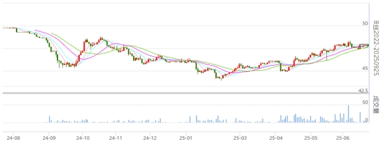 今日(周二)生絲電子盤各遠近合約均小幅收綠。因250625合約于昨日以 47.1萬的市,新上市的260825合約首日交易以 48.27萬的價格收盤,較退市合約溢價,帶動生絲電子指數(shù)實現(xiàn)技術(shù)性收紅。