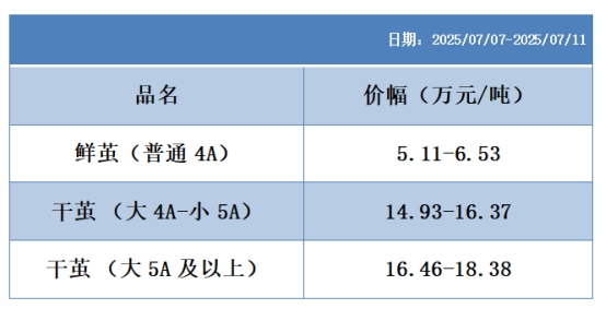 本周高品位生絲協(xié)作單位成交價格區(qū)間