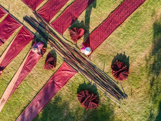 在小紅書等時(shí)尚平臺,東方三緣色的話題超熱,而香云紗的色彩營銷又很契合。香云紗的薯莨褐、河泥黑、陽光黃等天然色系,恰好能對應(yīng):