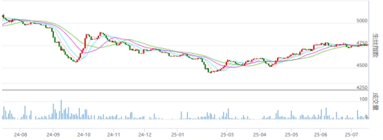 今日(2025年07月16日,周三)中國繭絲綢交易市場生絲電子指數(shù)上漲0.07%報(bào)收于4760.44點(diǎn)。B絲2022D(商檢4A級(jí)生絲):250725合約上漲0.06萬元報(bào)收于47.31萬元;250925合約上漲0.03萬收于47.52萬元;260325合約上漲0.06萬元報(bào)收于48.09萬元。