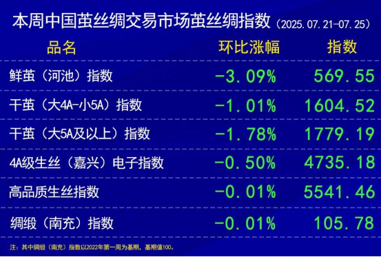 本周中國繭絲綢交易市場繭絲綢指數(shù)