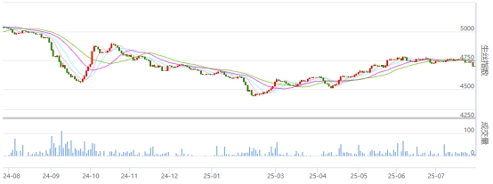 今日(2025年07月29日,周二)中國繭絲綢交易市場生絲電子指數(shù)報平收于4700.81點。B絲2022D(商檢4A級生絲):250825合約上漲0.03萬元報收于46.86萬元;250925合約上漲0.03萬元報收于46.89萬元;260325合約上漲0.12萬元報收于47.31萬元。