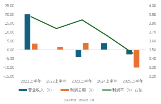 布藝行業(yè)近年來下行壓力較大。規(guī)模以上企業(yè)2025年上半年?duì)I業(yè)收入同比下降19.28%,自疫情后布藝行業(yè)增速明顯回落,利潤總額同比大幅下降46%,利潤率近三年也呈現(xiàn)逐漸下降趨勢。布藝產(chǎn)品多為半成品面料加工,傳統(tǒng)跑量的營銷模式由于成本的逐漸攀升和市場結(jié)構(gòu)的變化需要相應(yīng)調(diào)整與升級。