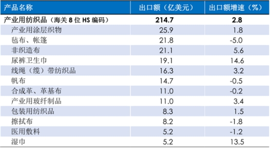 數(shù)據(jù)來(lái)源:中國(guó)海關(guān),中國(guó)產(chǎn)業(yè)用紡織品行業(yè)協(xié)會(huì)