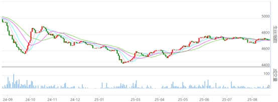 今日(周一)盤面各遠(yuǎn)近合約價(jià)格繼續(xù)小幅波動(dòng)。今日是250825生絲合約的最后交易日,終盤收于47.07萬(wàn)元,增倉(cāng)量繼續(xù)小幅增加,即將進(jìn)入實(shí)物交收環(huán)節(jié)。